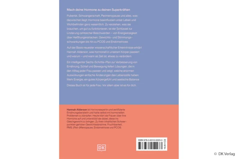 „Alles, was du über Hormone wissen musst” von Ernährungsberaterin und Hormonexpertin Hannah Alderson erklärt Frauen jeden Alters den Hormonhaushalt verständlich. Östrogen, Progesteron, Insulin und ihre Zusammenhänge werden mit einem 6-Säulen-Programm (Ernährung, Bewegung, Schlaf, Stressmanagement) optimiert.