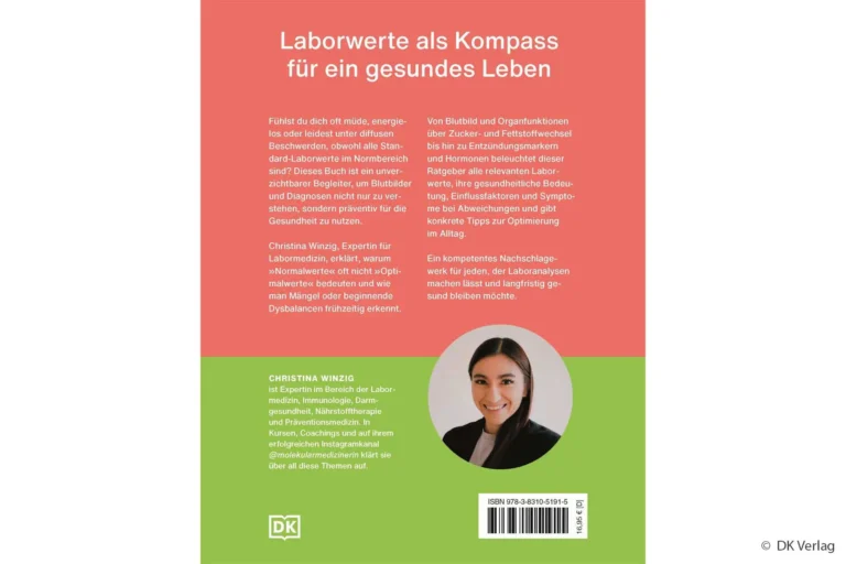 „Laborwerte einfach verstehen” von Christina Winzig ist ein kompakter Leitfaden, der Laborberichte und Blutwerte für Laien entschlüsselt. Über zentralen Werte wie Cholesterin, Blutzucker, Vitamine, Mineralstoffe, Hormone und Entzündungsparameter gibt es klare Erklärungen zu Normwerten, Abweichungen und Ursachen.