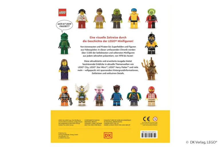 „LEGO® Minifiguren Die offizielle Geschichte” vom DK Verlag ist die umfassende Chronik aller über 2.500 Minifiguren seit 1978 – chronologisch sortiert und mit brillanten Fotos. Die erweiterte Neuausgabe deckt aktuelle Themenwelten wie LEGO DREAMZzz und LEGO Super Mario ab und enthüllt faszinierende Hintergründe zu Star Wars, Harry Potter, Ninjago und Minecraft Figuren.