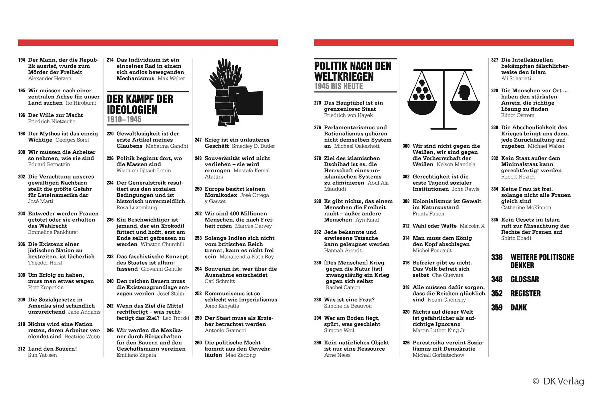 Politik betrifft uns alle – doch oft bleibt sie rätselhaft. Das Politik-Buch ändert das. Mit über 100 großen Ideen von der Antike bis heute zeigt es, warum bestimmte Denker unsere Gesellschaft geprägt haben. Warum kämpfte Emmeline Pankhurst für Frauenrechte? Was hat Hannah Arendt über Macht herausgefunden? Das Buch beantwortet solche Fragen verständlich und fesselnd. Besonders wertvoll: Die zeitliche Ordnung zeigt, wie sich politische Gedanken entwickelt haben. Mit hilfreichen Grafiken und spannenden Lebensgeschichten wird Politik nicht als trockenes Schulfach, sondern als lebendige Geschichte erzählt, die jeden Tag unser Leben beeinflusst.