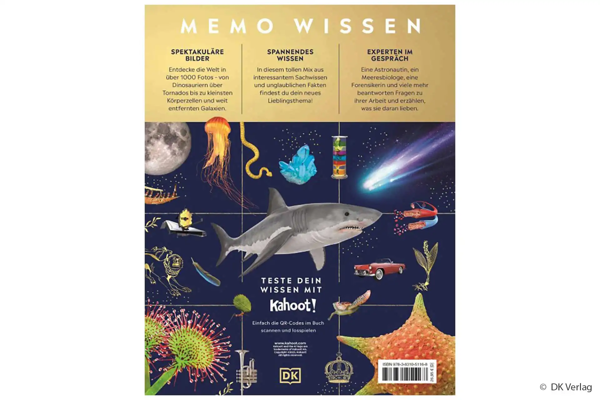 Wozu ein Lexikon in Zeiten von Google? Dieses Buch beweist: weil visuelle Wissensvermittlung unvergesslich ist. Mit über 1000 spektakulären Fotos und cleveren Infografiken macht „memo Wissen. Das große Lexikon” Schulwissen lebendig – von Weltraum und Erde über Tiere und Natur bis zur Geschichte der Menschheit. Das Besondere: Statt trockener Definitionen sprechen echte Expert*innen aus Zoologie, Raumfahrt und Neurologie – Kinder bekommen Einblicke in echte Forschungsarbeit. Jedes Themengebiet wird mit verblüffenden Zusatzfakten bereichert, die zeigen, wie spannend Wissen sein kann. Mit integrierten kahoot!-Quiz-Fragen können Kinder das Gelernte spielerisch vertiefen – ob daheim oder in der Schule. So wird aus Nachschlagebedarf ein Abenteuer durchs Wissen, das Kinder ab 8 Jahren nicht mehr aus der Hand legen wollen. Ein Lexikon, das moderne Lernbedürfnisse erfüllt.