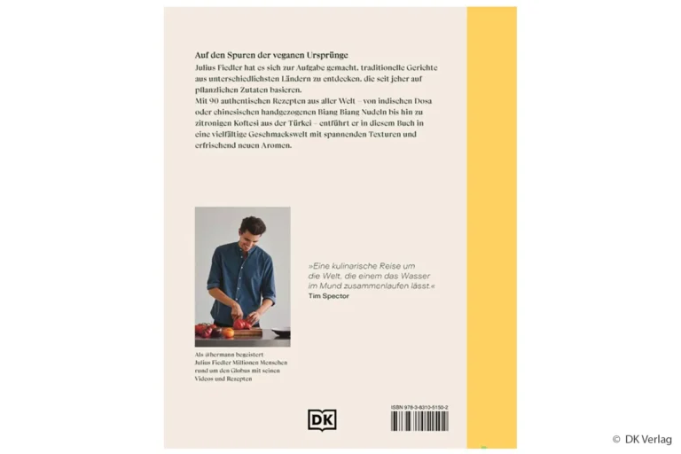 „Natürlich vegan” von Food-Creator Julius Fiedler (@hermann) stellt über 90 traditionelle pflanzliche Gerichte aus aller Welt vor – bewiesen vegan seit Generationen. Von indischen Dosa über türkische Zitronen-Koftesi bis zu chinesischen Biang Biang Nudeln zeigt das Kochbuch, wie vielfältig naturbelassene Zutaten schmecken.
