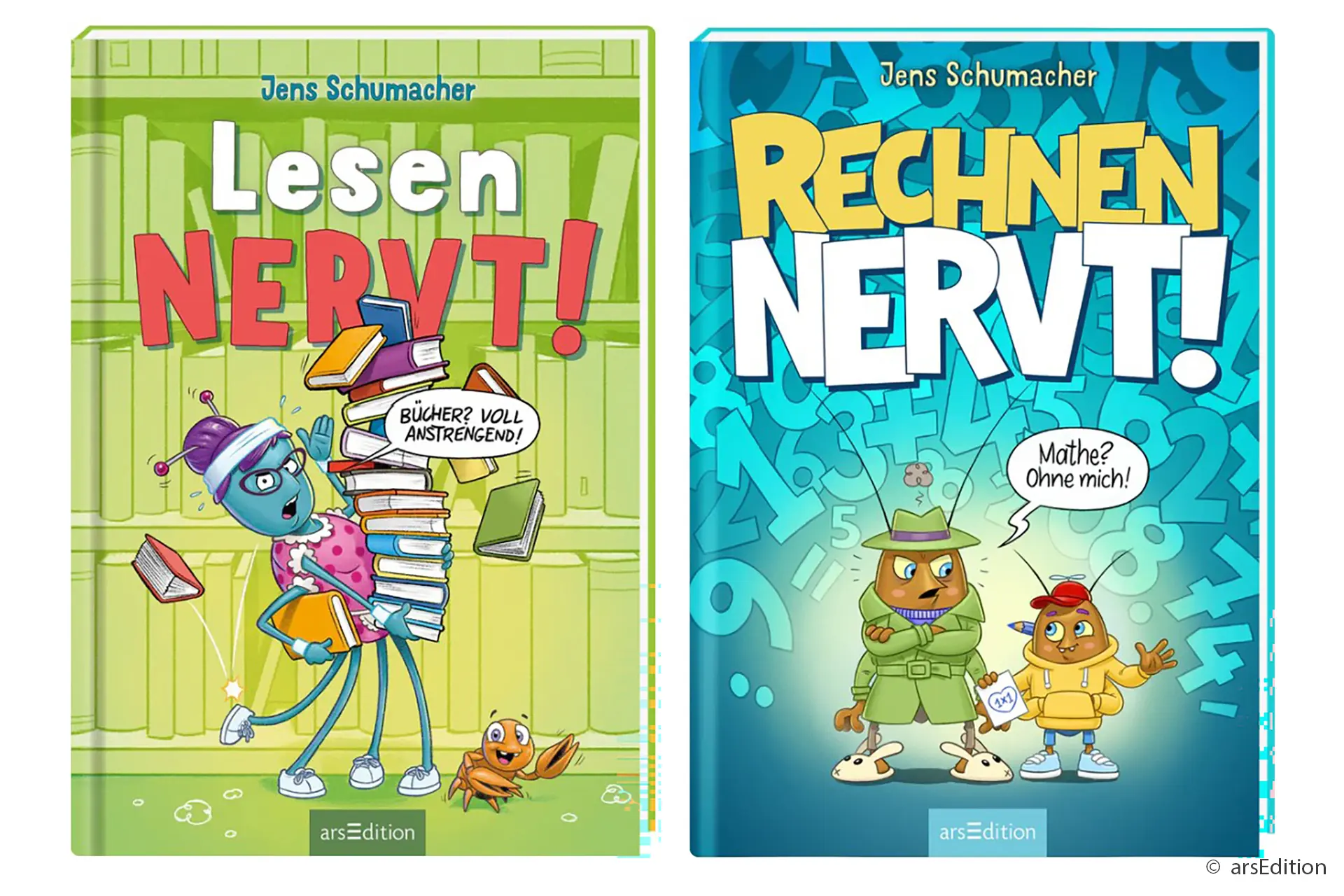 Die „NERVT!“-Reihe von Jens Schumacher ist genau richtig für Kinder ab 7 Jahren, die Mathe oder Lesen gerade nicht so mögen. Mit humorvollen Figuren, die selbst „muffeln“, werden Zahlen und Buchstaben spielerisch greifbar.
