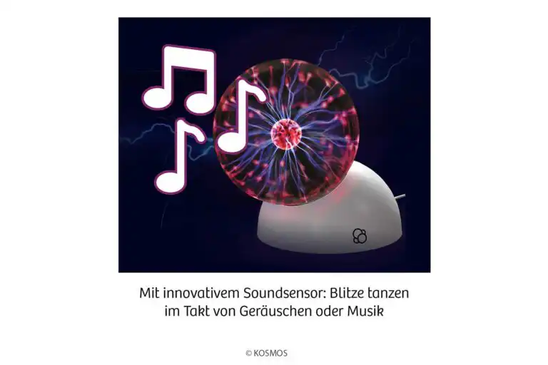 Besonders genial: Dank des integrierten Soundsensors reagieren die rötlich-violetten Lichtblitze nicht nur auf Berührungen, sondern auch auf Geräusche und zucken sogar im Takt der Musik. Die beiliegende Anleitung erklärt anschaulich die wissenschaftlichen Hintergründe rund um Elektrizität und Edelgase.